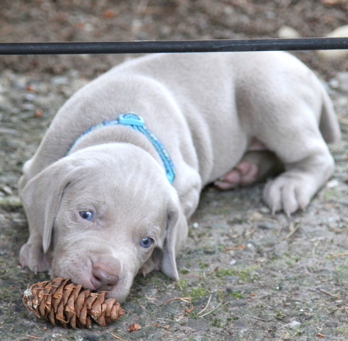 The puppies Dad Horatio came to see the babies today! It was very nice to see the whole family together. Now most male Weimaraners want NOTHING to do with puppies and are usually quite scared of them. They usually get as far away from them as possible. I was so pleased to see that Horatio didn't mind his babies at all. I just love this family portrait of the family.